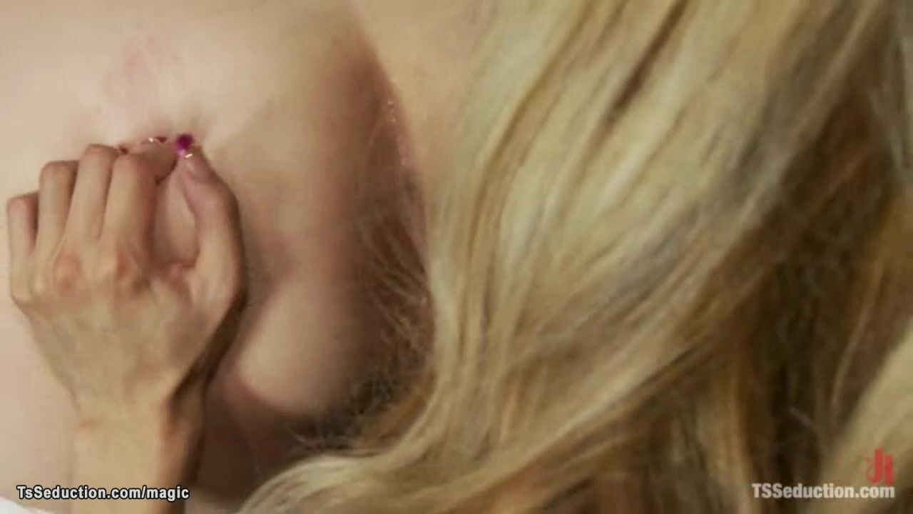 Blonde big tits shemale domintarix Paris A drags cheating man Vern Hopkins in dungeon then binds and spanks and anal fucks him with hard dick