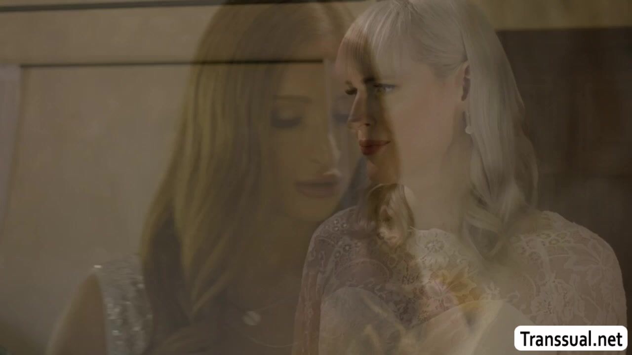 Tgirl bride helped by her bridesmaid fixing her wedding gown.After that,they get horny and start kissing each other passionately.Next is,she lets her bridesmaid throat her hard tranny cock.In return,she fucks her bridesmaids wet pussy so hard.