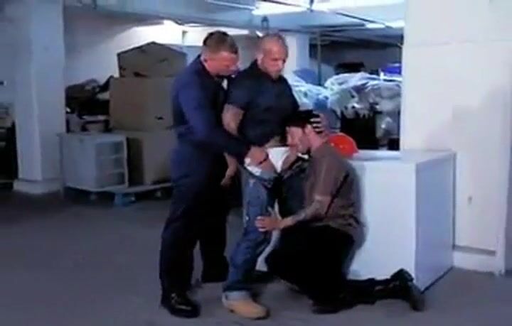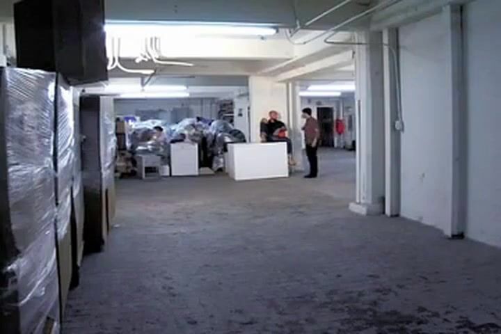 Boy by SEARS workers in the store's basement
