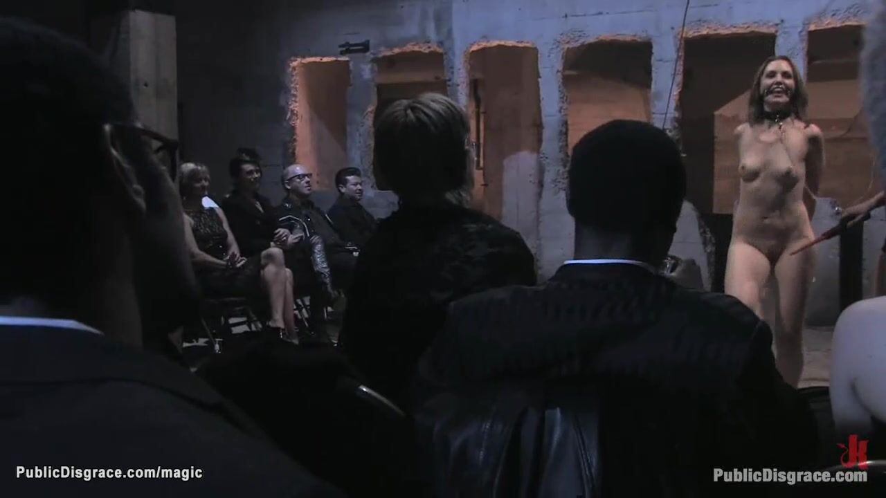 Lezdom Princess Donna Dolore makes brunette slave Sarah Shevon with tazapper jumping for public then sucking big dicks to group of strangers