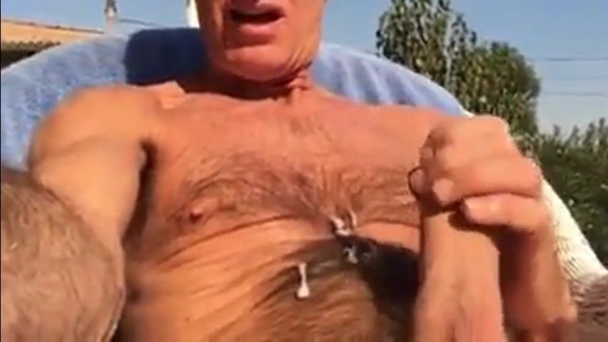 very smart senior guy wanking in his backyard garden and a great ending!