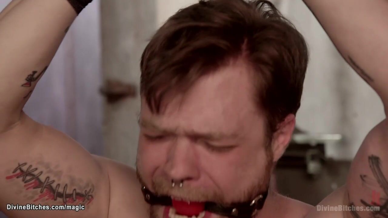 Big tits blonde MILF butcher Aiden Starr straps and gaggs delivery man Mike Panic and hard whips then with black strap on cock fucks him in mouth