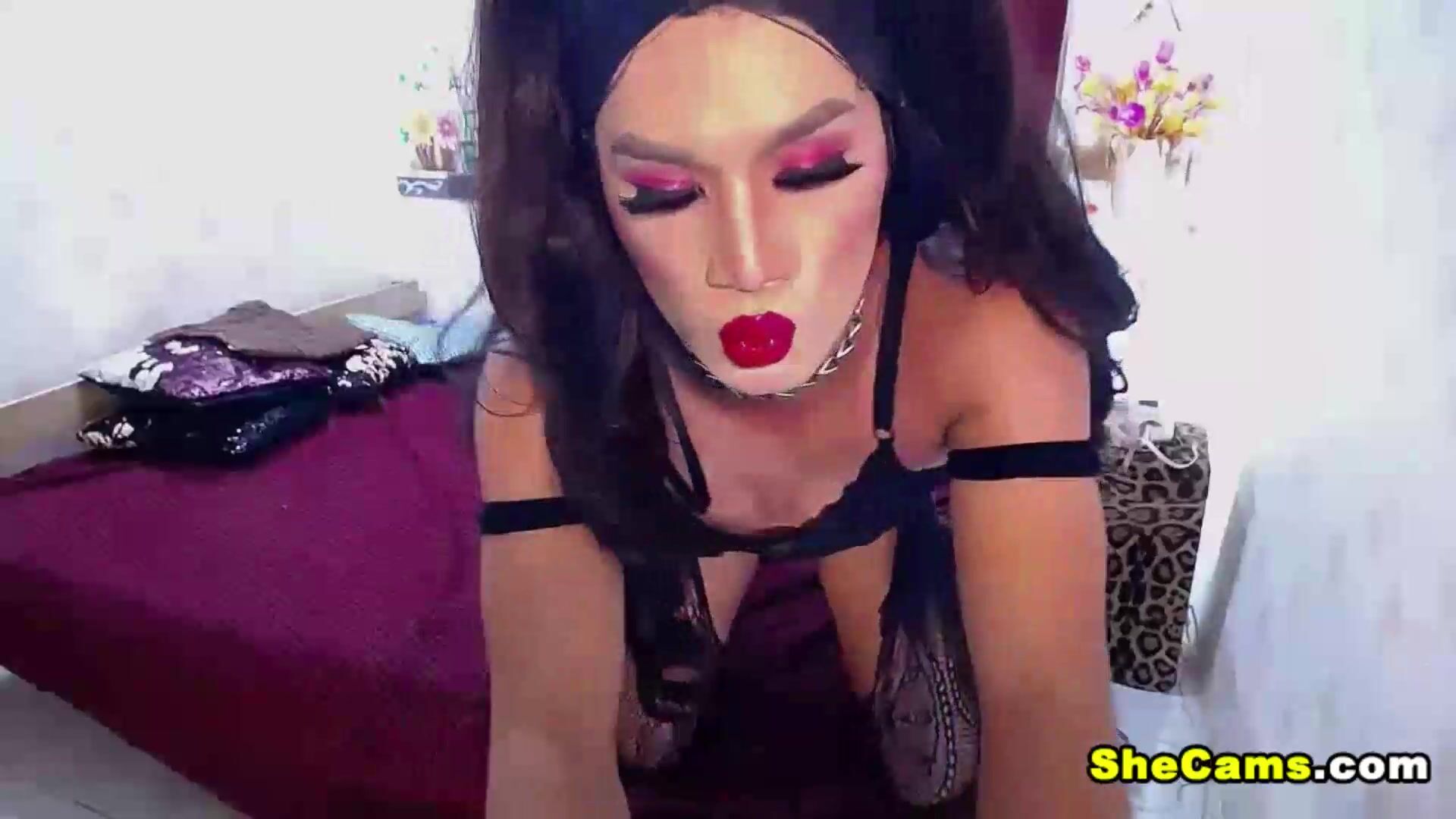 The big tits trans woman stretches her asshole and toying it with her bare hands while masturbating her dick in the couch. Busty shemale poses huge tits and big tranny cock in sexy lingerie while stripteasing. She wraps her engorged boner with a soft gel sleeve and pumps the shaft up and down. This glamorous huge cock transgender woman masturbates faster and faster edging toward orgasm until ropes of cum spurt from her dick. The trans-woman begins rubbing her nipples down to her she-dick. She enjoys playing with her cock. This pretty shemale gives us a solo masturbation show.