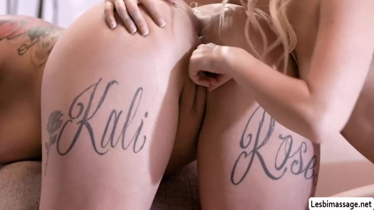 Hot blonde gives her hot roommate a free massage after she arrive from the gym.While massaging they both get horny and start kissing each other passionately.After that,they suck each others nipples and then licks their wet pussies.