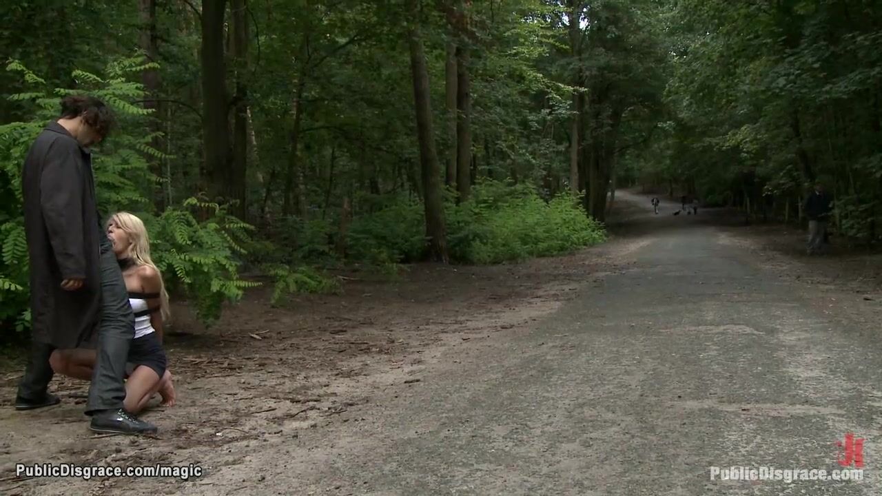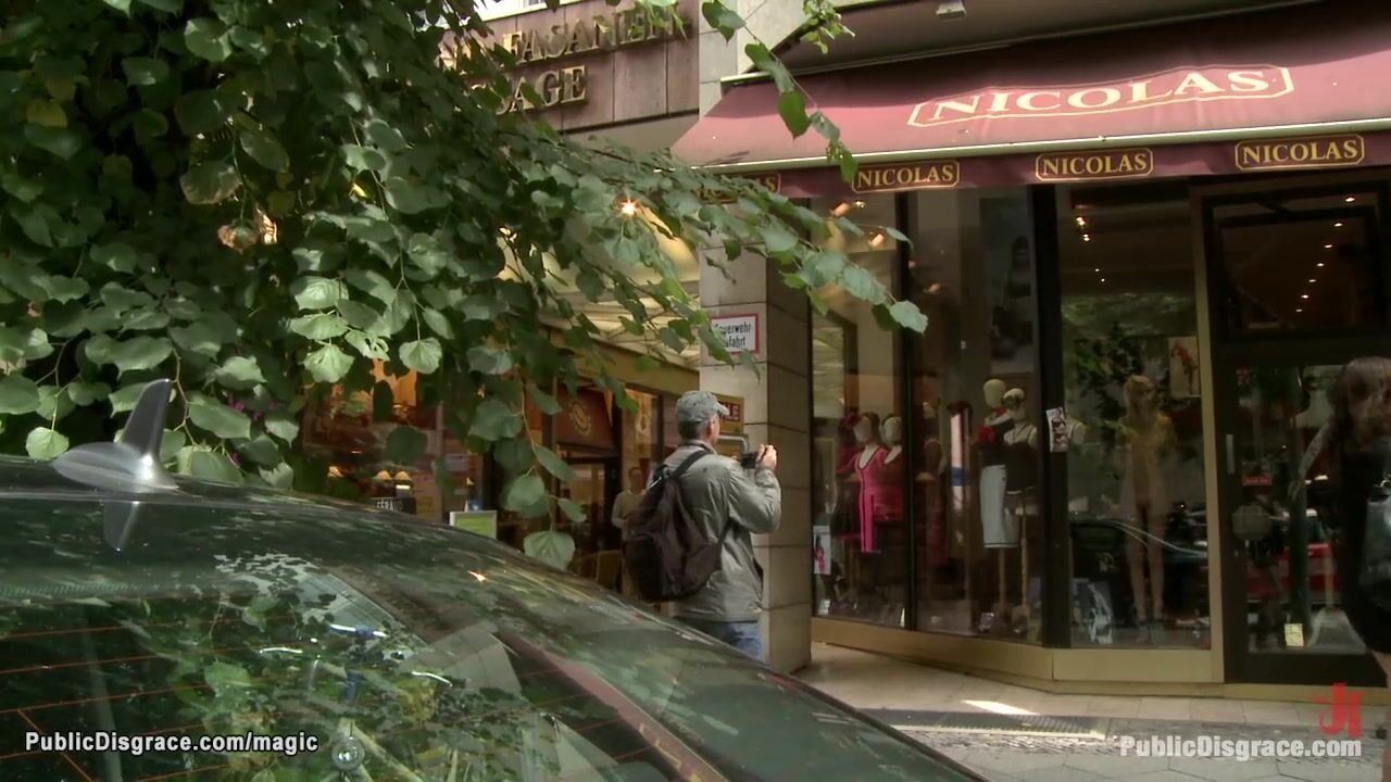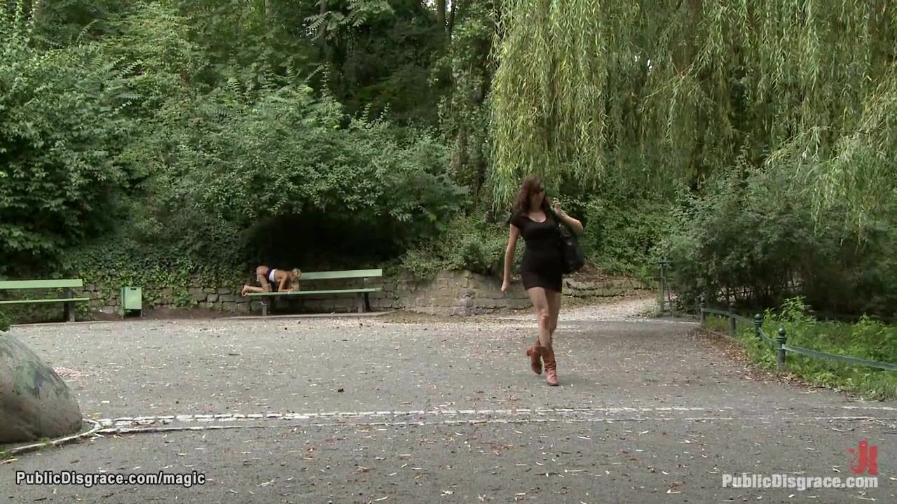 Naked blonde Blanche is bound in public shop window then ass whipped on the bench in the park by Princess Donna Dolore and fucked by big cock Zenza Raggi