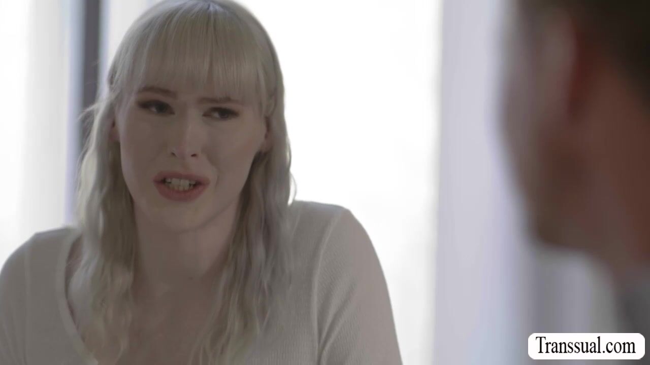 Busty shemale tutor and her client are on the couch kissing each others lips passionately.After that,she lets him get naked and she then throats his big cock and licks his ass.Next is,she bareback fucks his tight wet ass so deep and hard.
