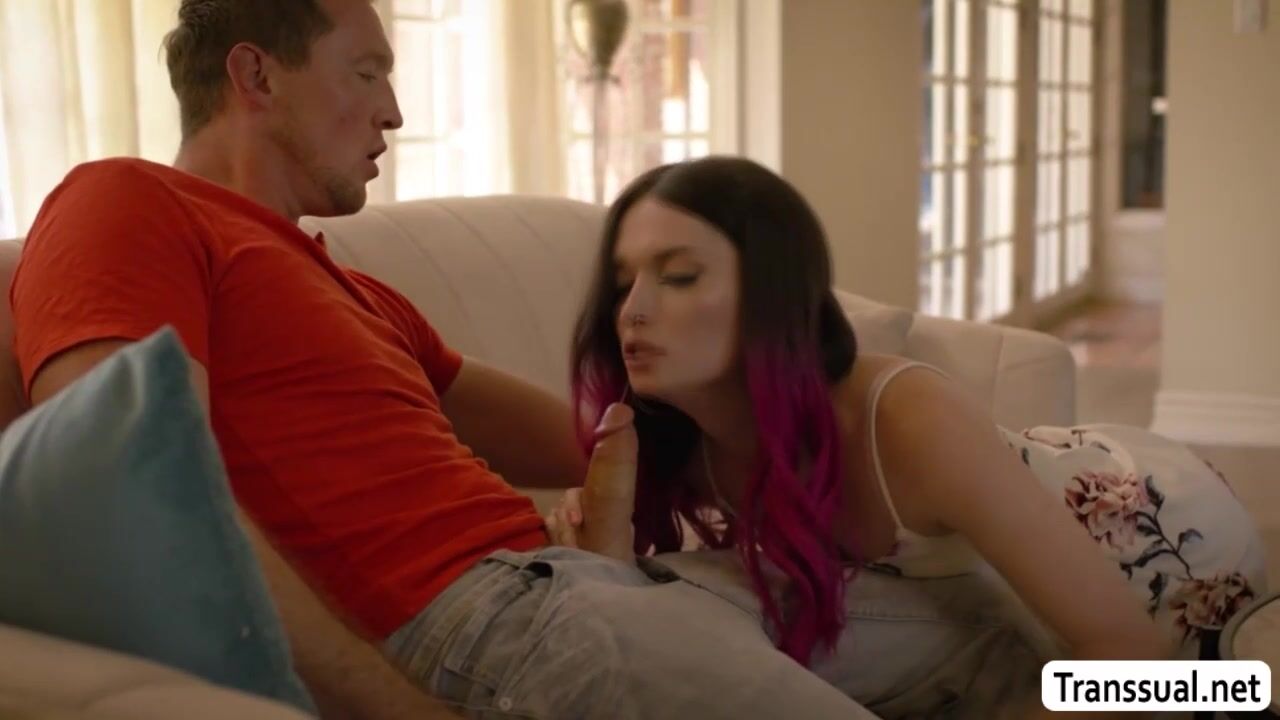 Stepbro visits his TS stepsister in their old house.After that,they start kissing each other on the couch passionately.Next is,she throats the big cock of her stepbrother and in return,he licks her ass first and then barebacks it so hard.