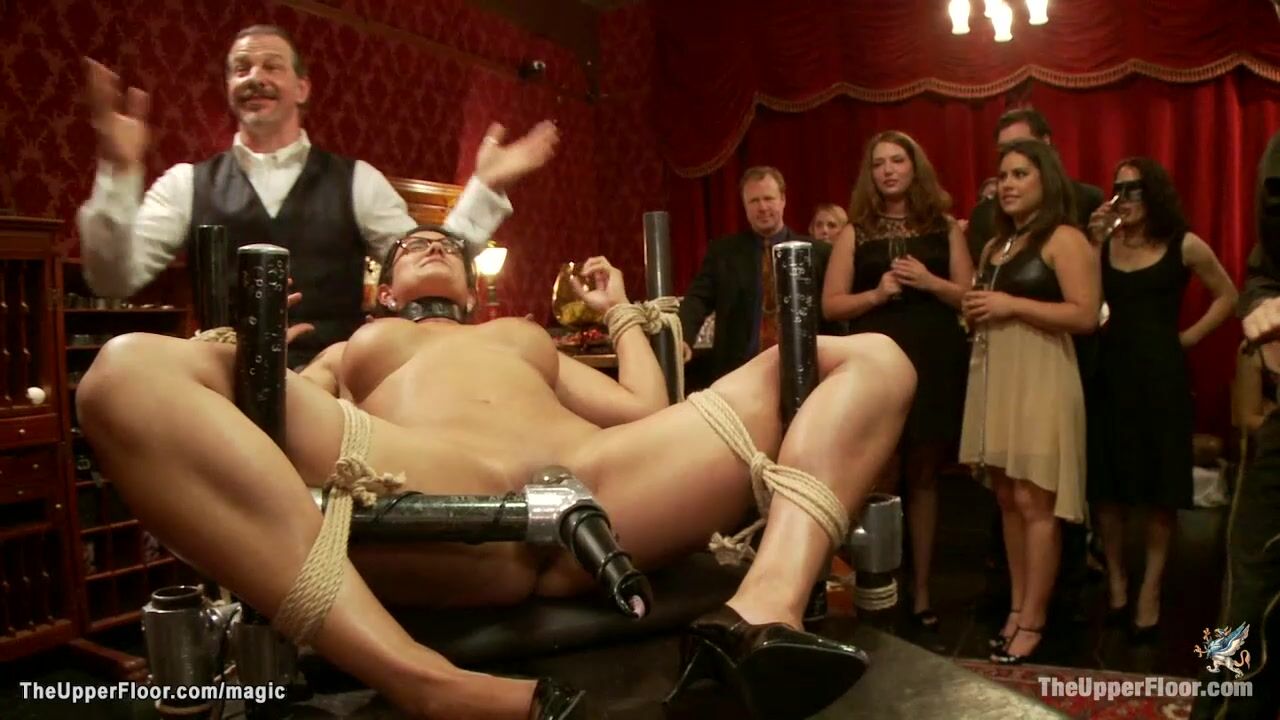 Three hot service slaves Claire Robbins and big tits Penny Barber and Danny Wylde are bound and fucked and tormented at orgy bdsm party in the Upper Floor