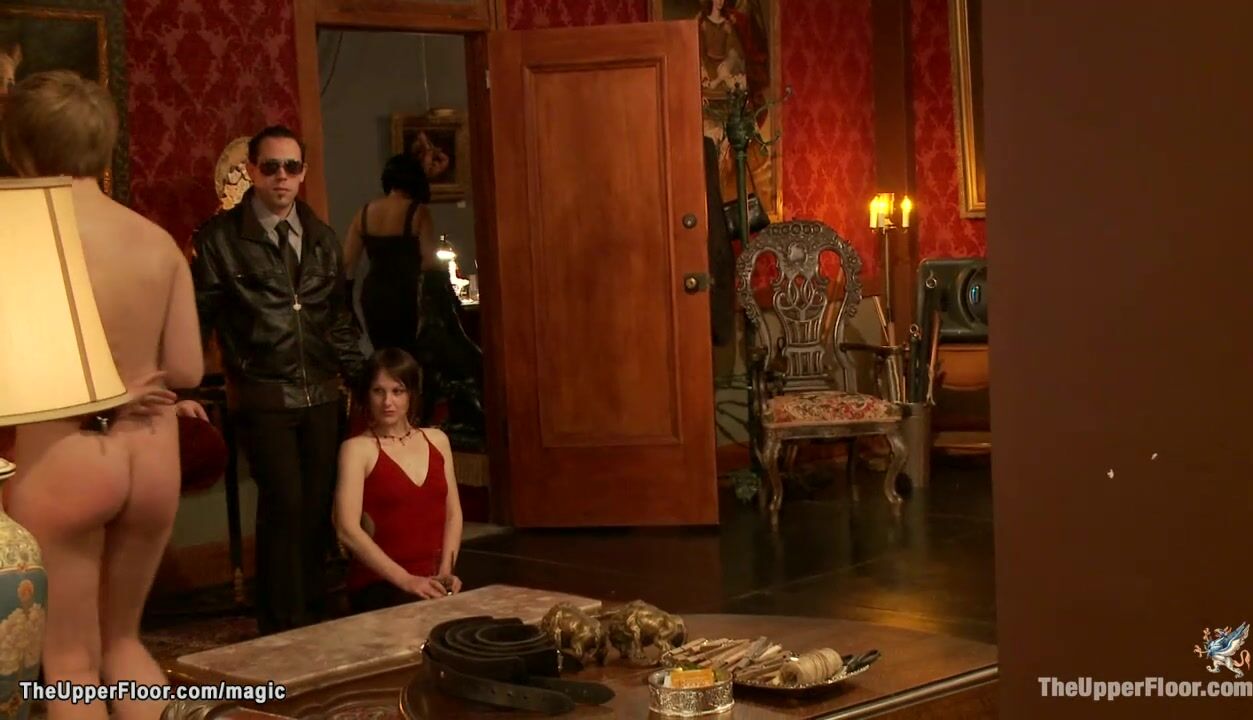 In the Upper Floor hot slaves Alani Pi and Beretta James and Dahlia Sky are discilpined and fucked by big cocks for horny guests in various positions