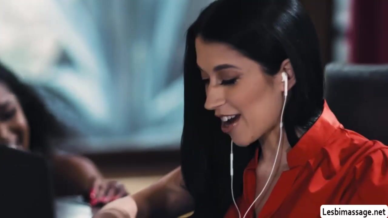 Curly ebony gives her hot wife a massage under the table while shes on her online meeting.After that,she gets horny and start licking her wifes wet pussy.Next is,her wife stop the meeting and then they start kissing and licking each others pussy.