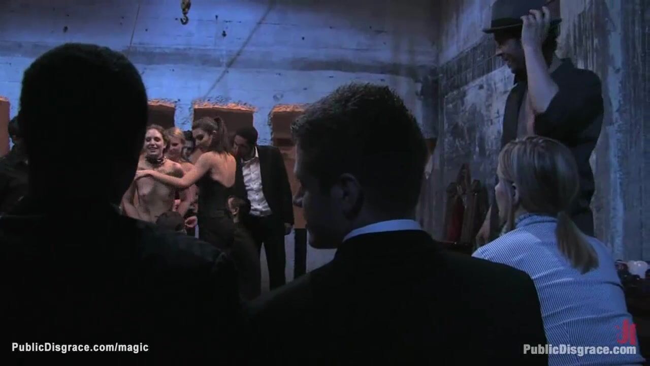 Gagged brunette slave Sarah Shevon gets tazappered by mistress Princess Donna Dolore then bound and rough big cock fucked in public crowded place