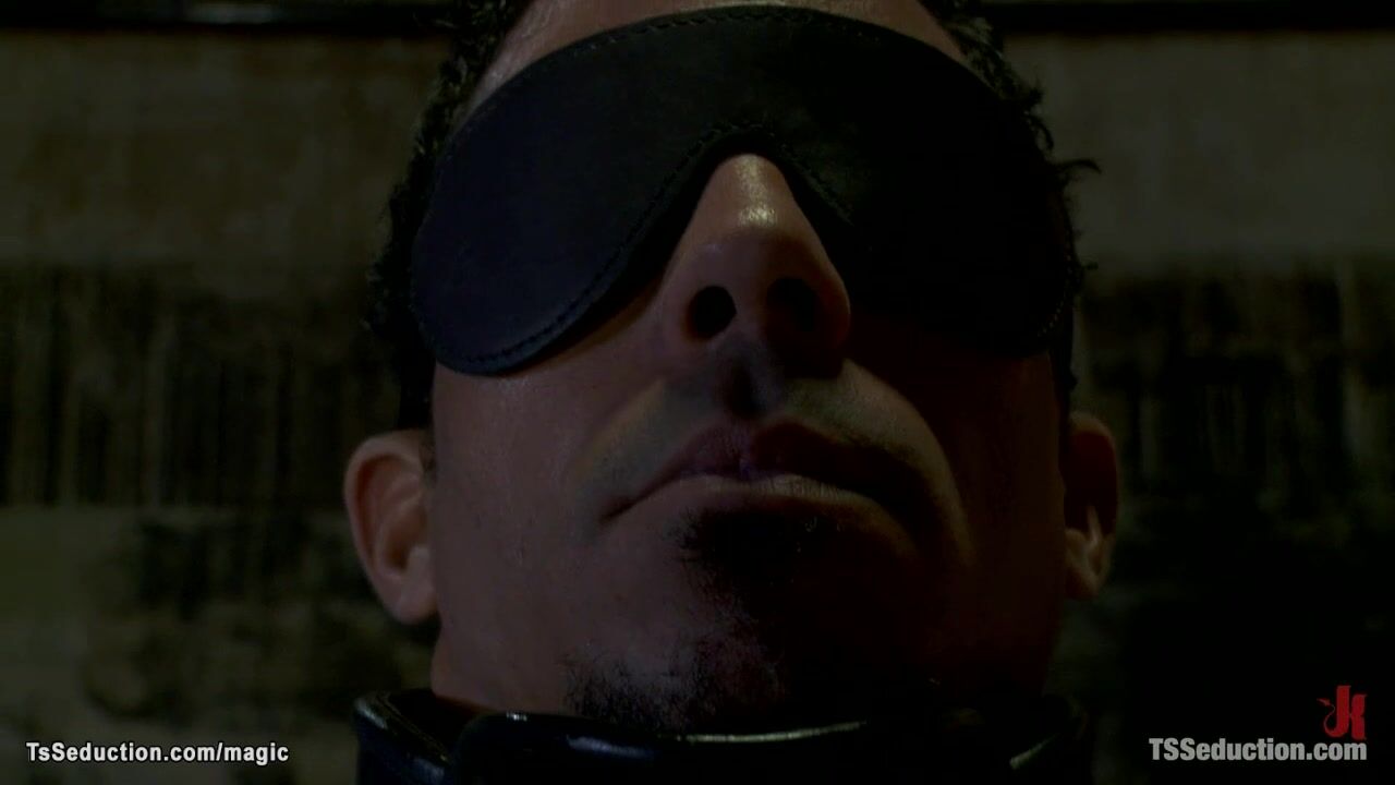 Two big tits blonde shemales mature Johanna B and Paris A bind and lay tanned man Lobo on table and gang bang fuck him with big dicks