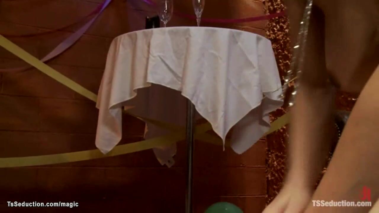 Big cock Latina shemale bombshell Jessica Host in black dress seduces blond man Ned Mayhem at party then after party with big dick anal fucks him