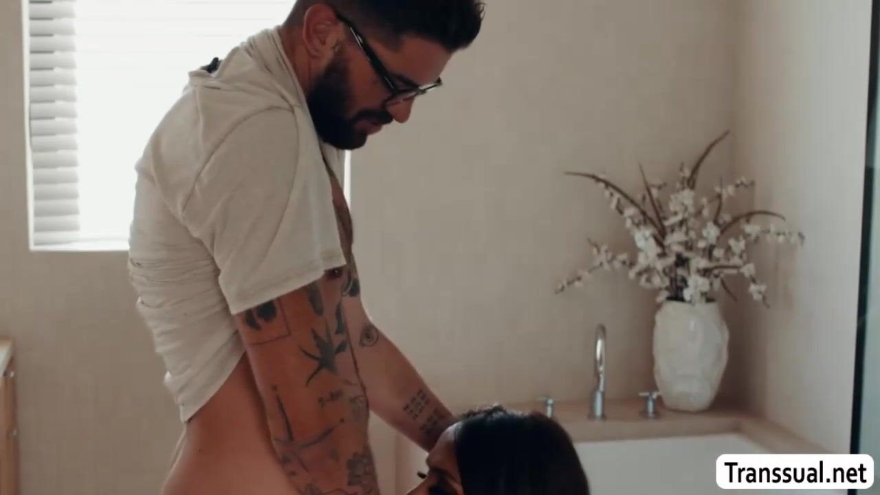 Horny stepson watches his shemale stepmom masturbating in the bathroom.After that,he pulls out his dick and jerks it too.Next is,he goes inside and lets his TS stepmom suck his hard cock and he then bareback her ass in return.
