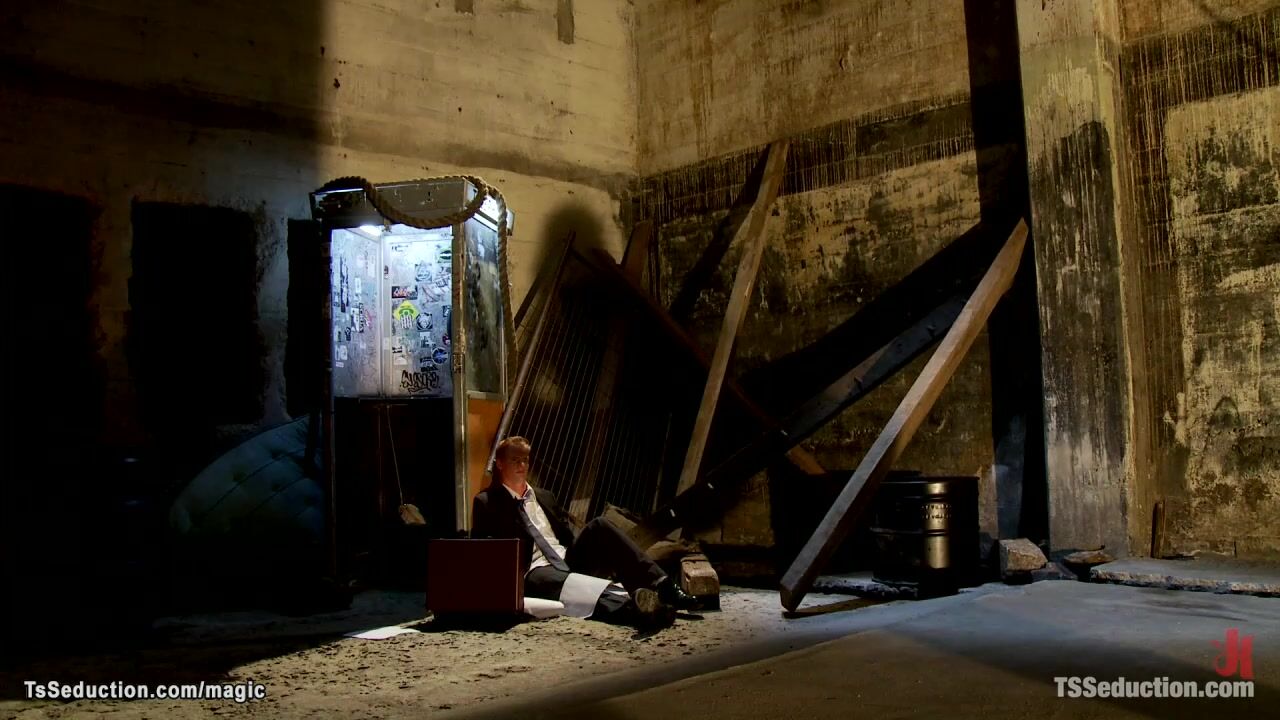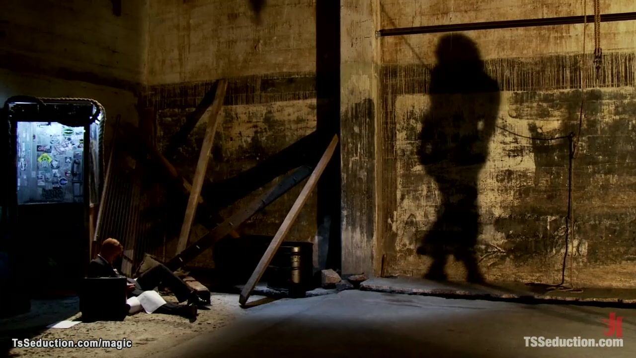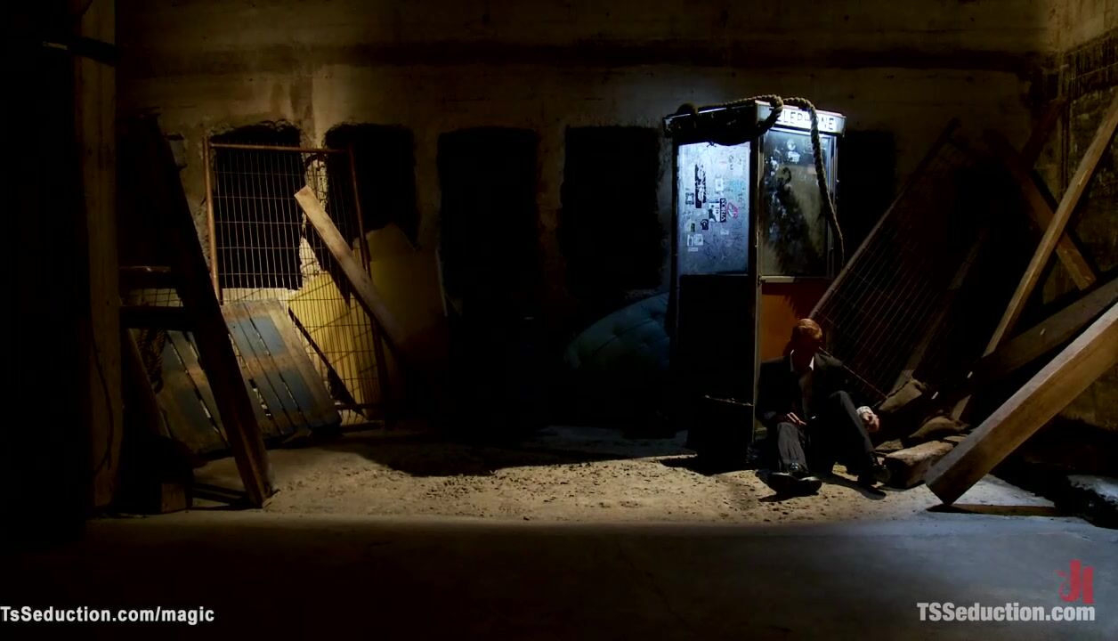 Big tits tattooed brunette shemale Morgan Bailey picks up man Vennue Longhorn in dark alley and brings him in her dungeon where anal fucks with big dick