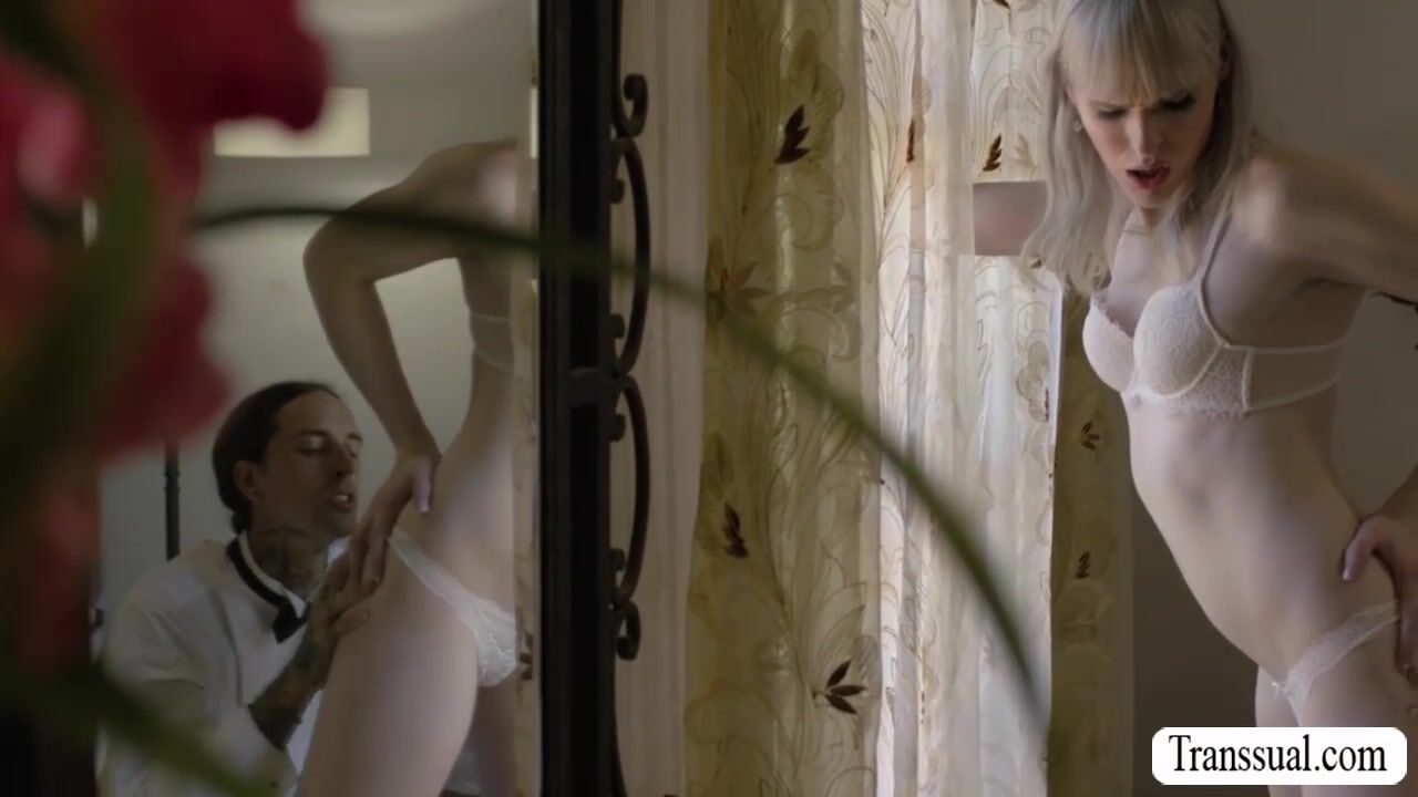 Shemale bride and her soon to be husband are in the room having sex first before their marriage.After that,the slut bridesmaid watching them and she join.She lets the groom lick her pussy while the TS bride is fucking her pussy.