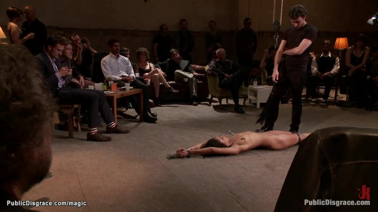 Petite ebony slave Skin Diamond is bound and laid on the ground with nipples suctioned then anal fucked with dicks on a sticks till fucked in suspension by James Deen