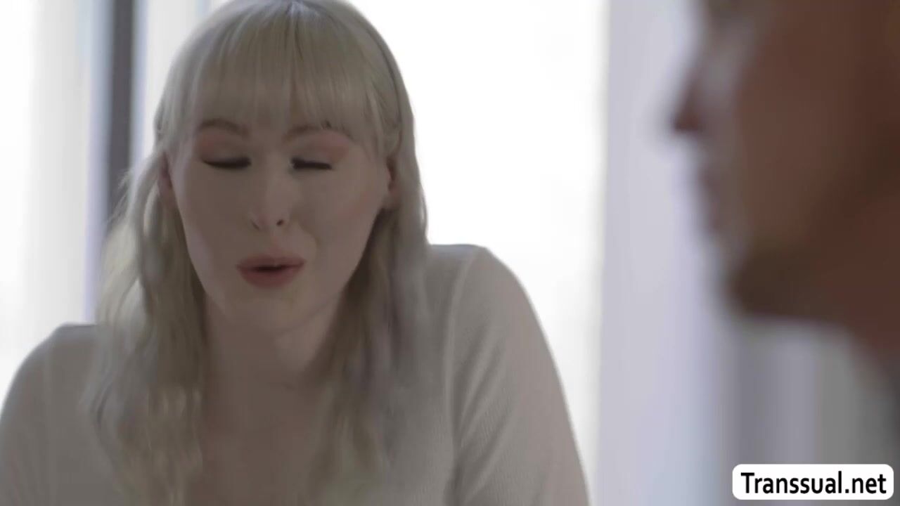 Busty shemale and her handsome student are on the couch reading some books.After that,they get horny and start kissing each other.Next is,she throats the big cock of her student and she then licks his ass before she barebacks it so deep and hard.