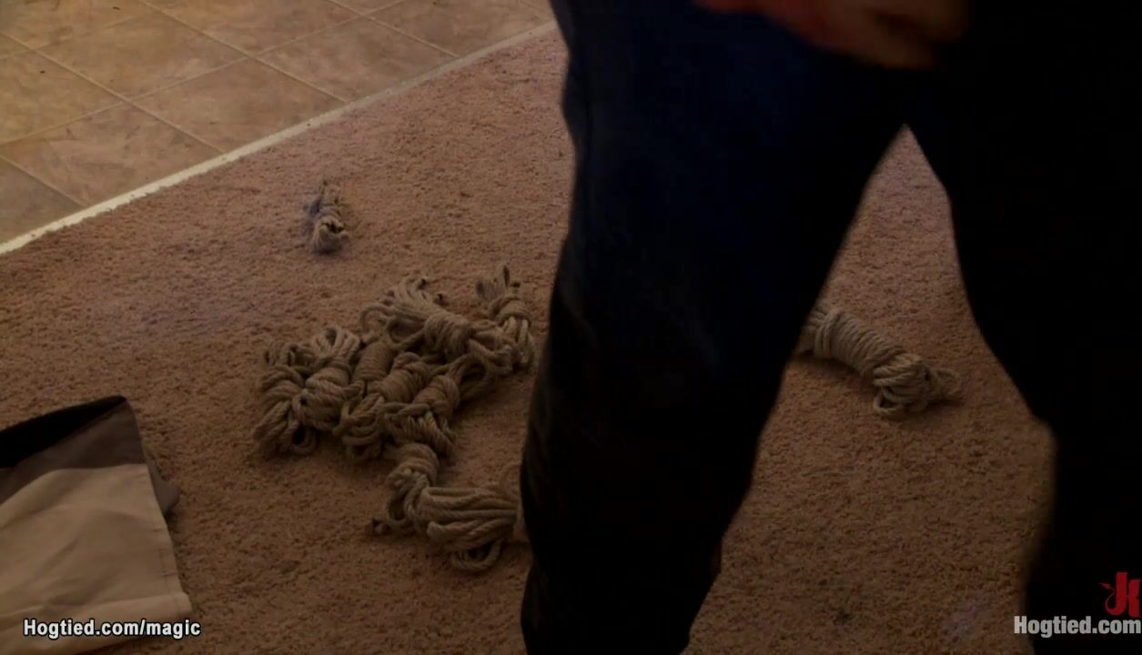 Hot big tits blonde college babe Kaylee Hilton is bound by masked intruder Mark Davis and rough pussy and mouth fucked by his big cock