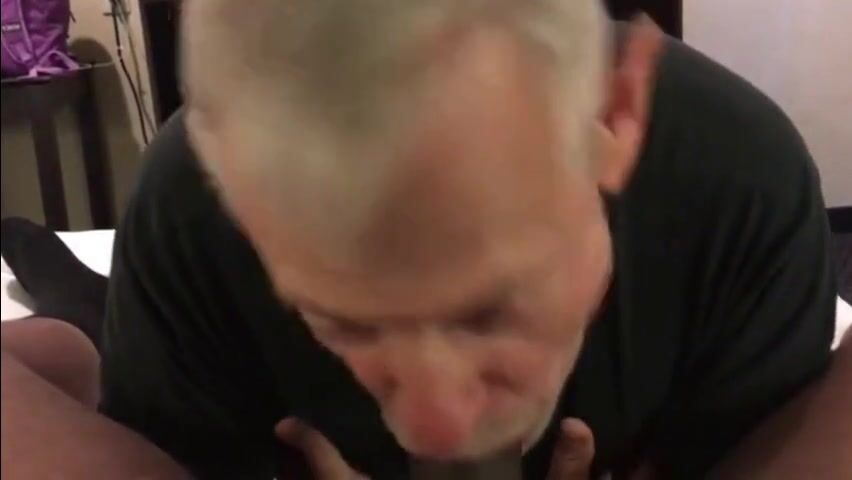Older daddy was hungry for son's juicy uncut dark cock... he sucks it really good and deep throats all that precum in his hotel suite.