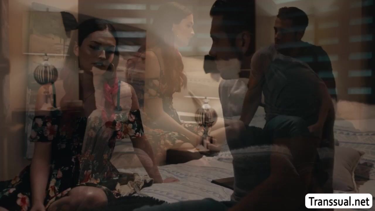 Cute shemale goes to the room of her stepbrother and talks about something.After that,they get horny and start kissing each other on the bed.Next is,she throats his hard big cock passionately and lets him bareback her wet tight ass so hard.