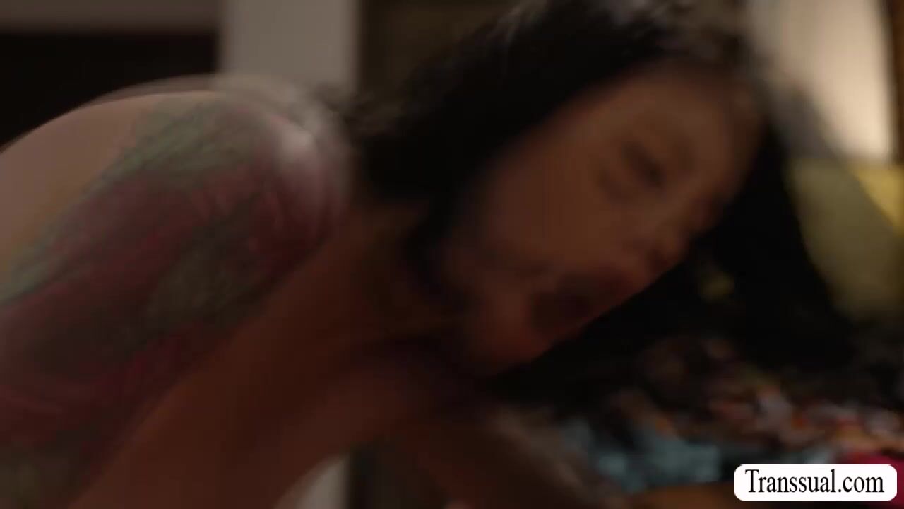 Tattooed babe goes to the room of her shemale stepsister to have sex with her.They start kissing each other on the bed and she then throats the shecock of her TS stepsister.In return,her Tgirl stepsis licks and fucks her wet pussy so deep and hard.