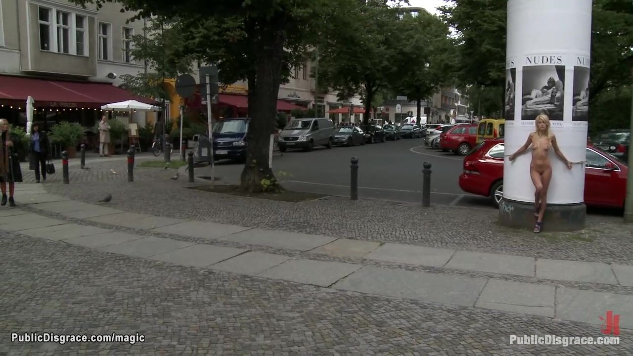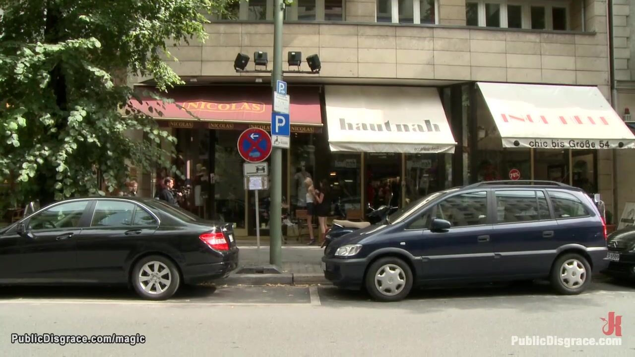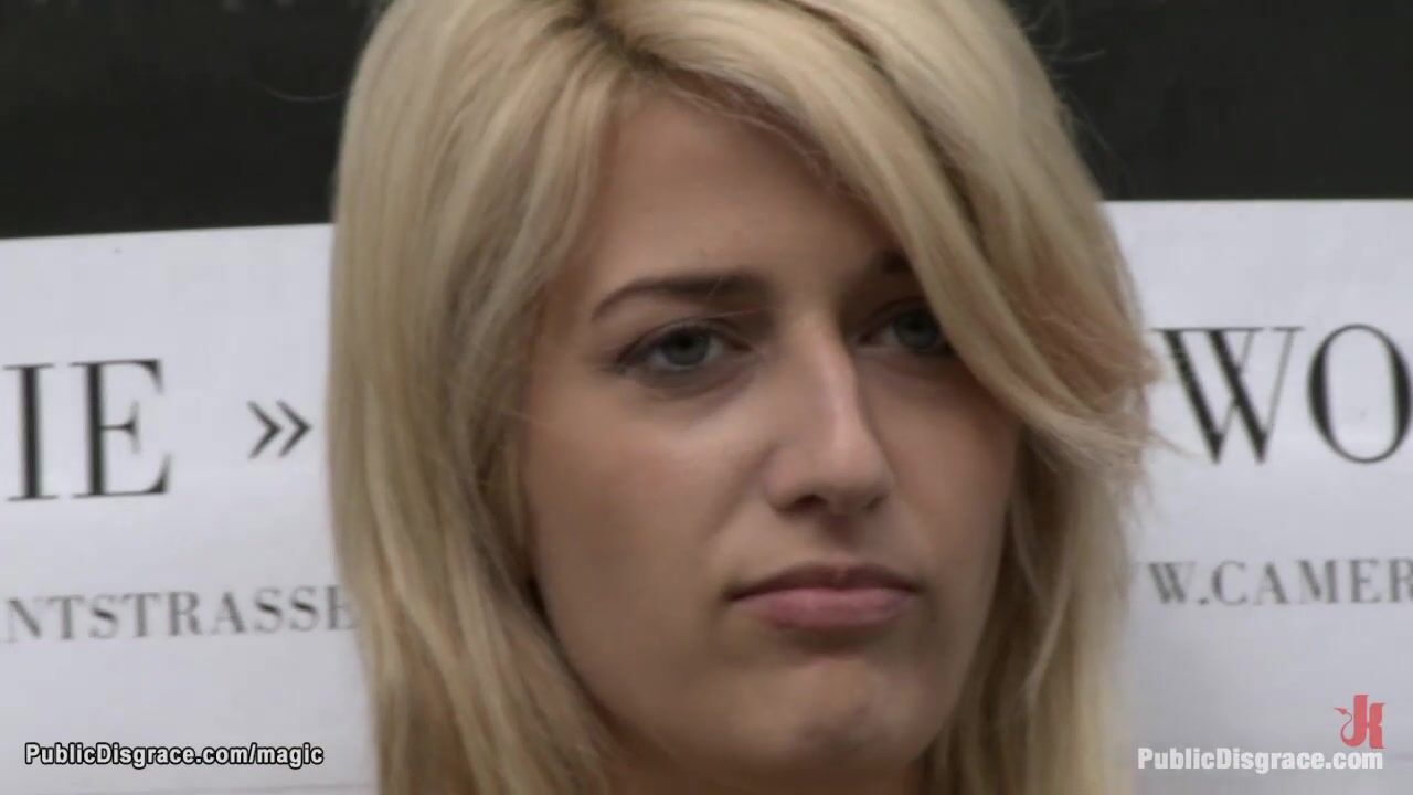 Small tits Euro blonde Blanche Summer is bound with hands in box tie then gagged in public streets by Princess Donna Dolore then mouth fucked by big dick Zenza Raggi in the park