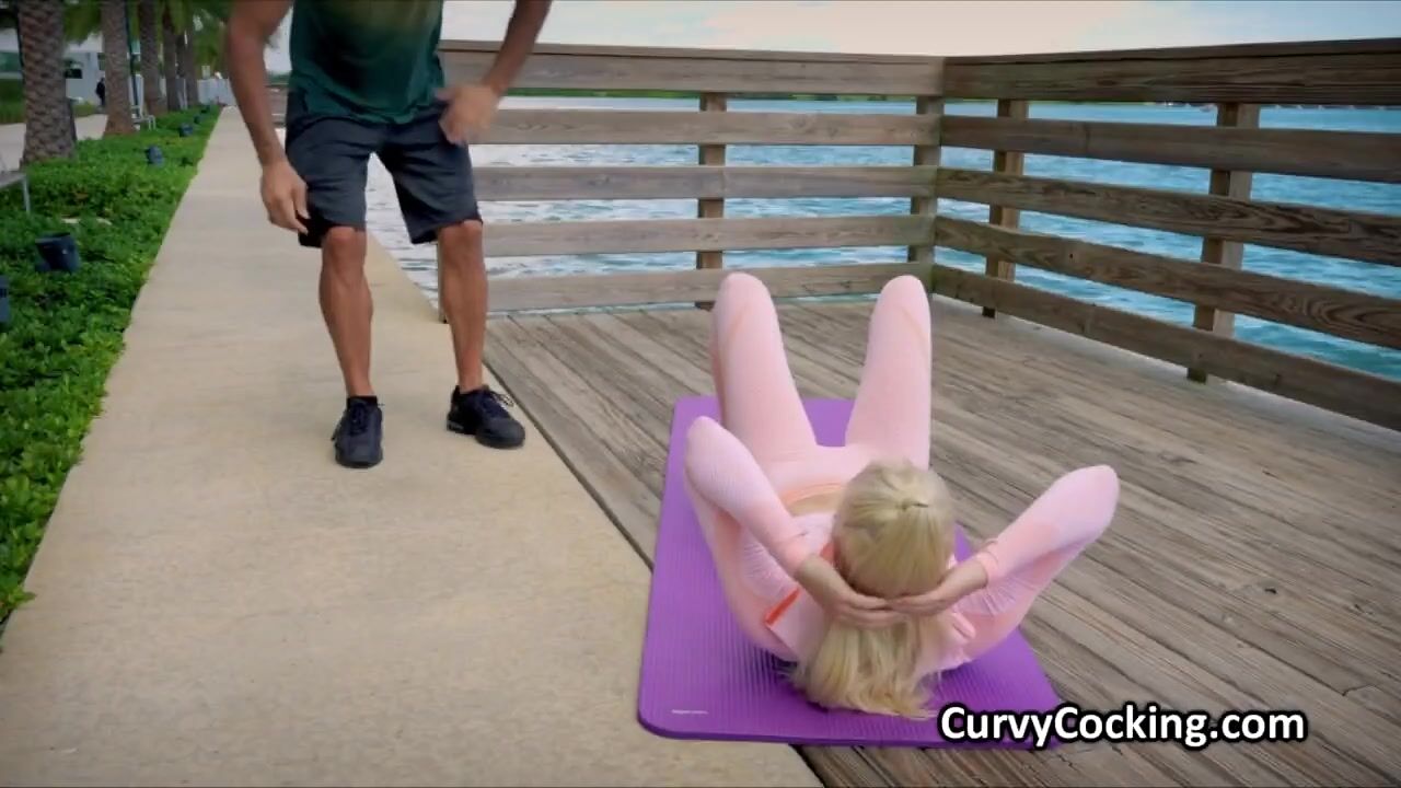 Picking up busty fitness babe for a quickie