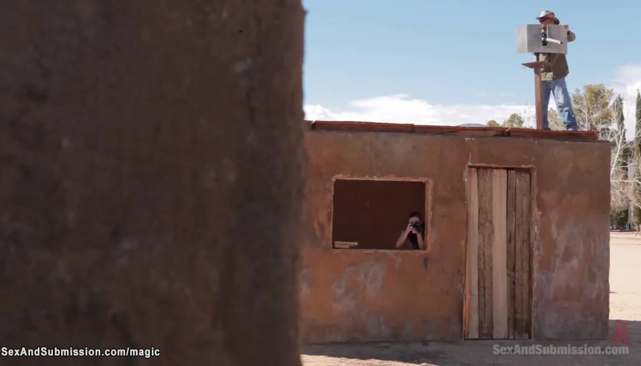 Sexy war reporter Casey Calvert caught shooting soldier James Deen tormenting captive Lyla Storm and then in bondage rough anal fucked outdoors in a desert camp