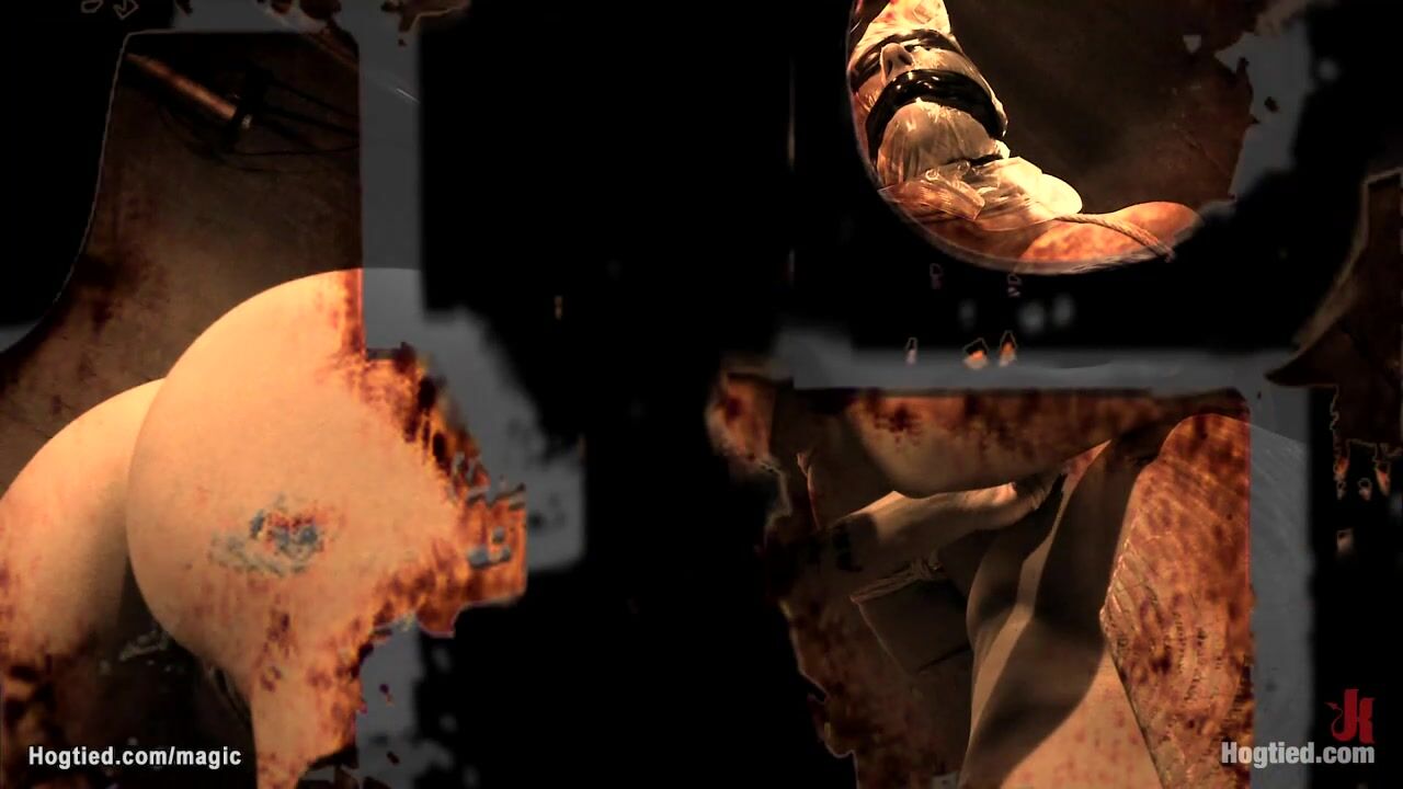Little brunette lesbian dominatrix Gia DiMarco hard whips big boobs MILF wrestler Ariel X then on mattress fucks her with strap on dick on hogtied