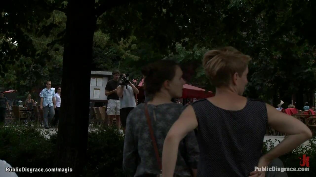 Princess Donna Dolore sticks electrode pads on ass of German slave Black Lady and walks her in public then big cock Tommy Pistol fucks her gagged