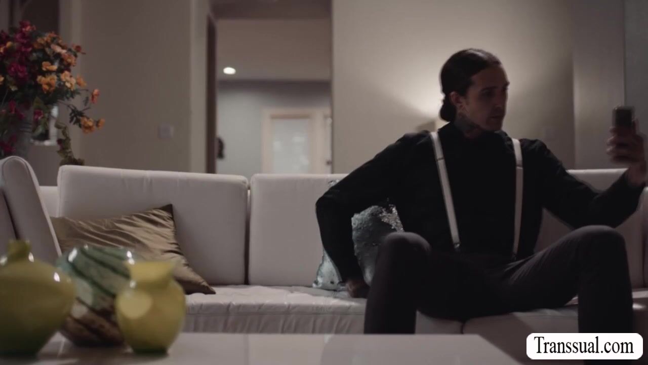 Horny TS bareback fucked by tattooed bf