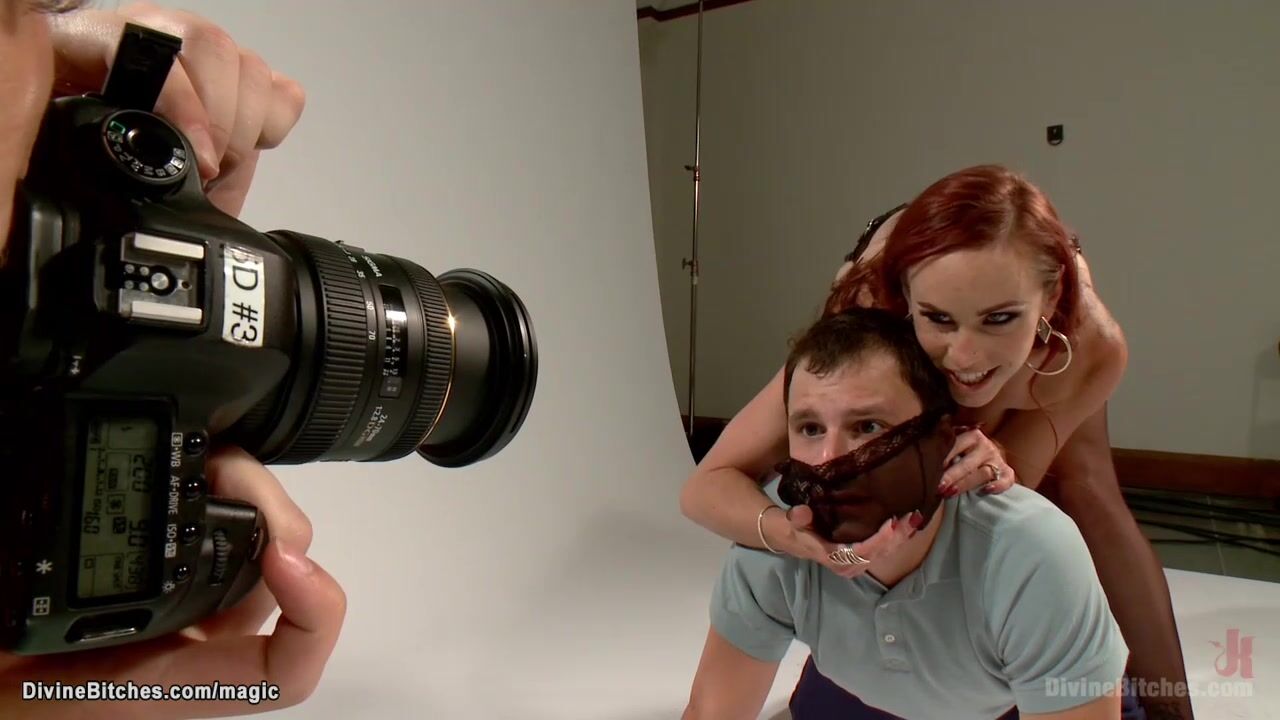 Huge boobs redhead MILF wife Bella Rossi makes cuckold Marcelo sucking big dick to photographer Wolf Hudson then fucks in front of him