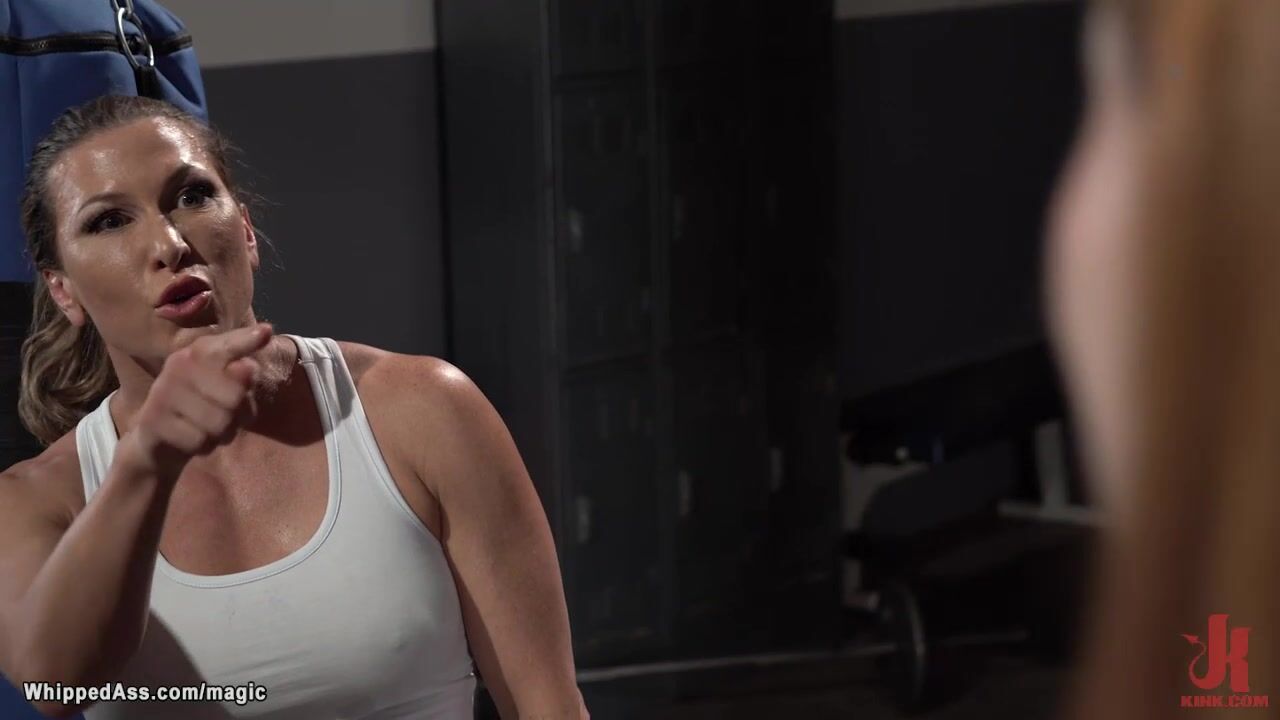 Tough big tits MILF lesbian boxer Ariel X binds blonde manager Maya Kendrick on the bench and gives face sitting then spanks and vibrates her pussy