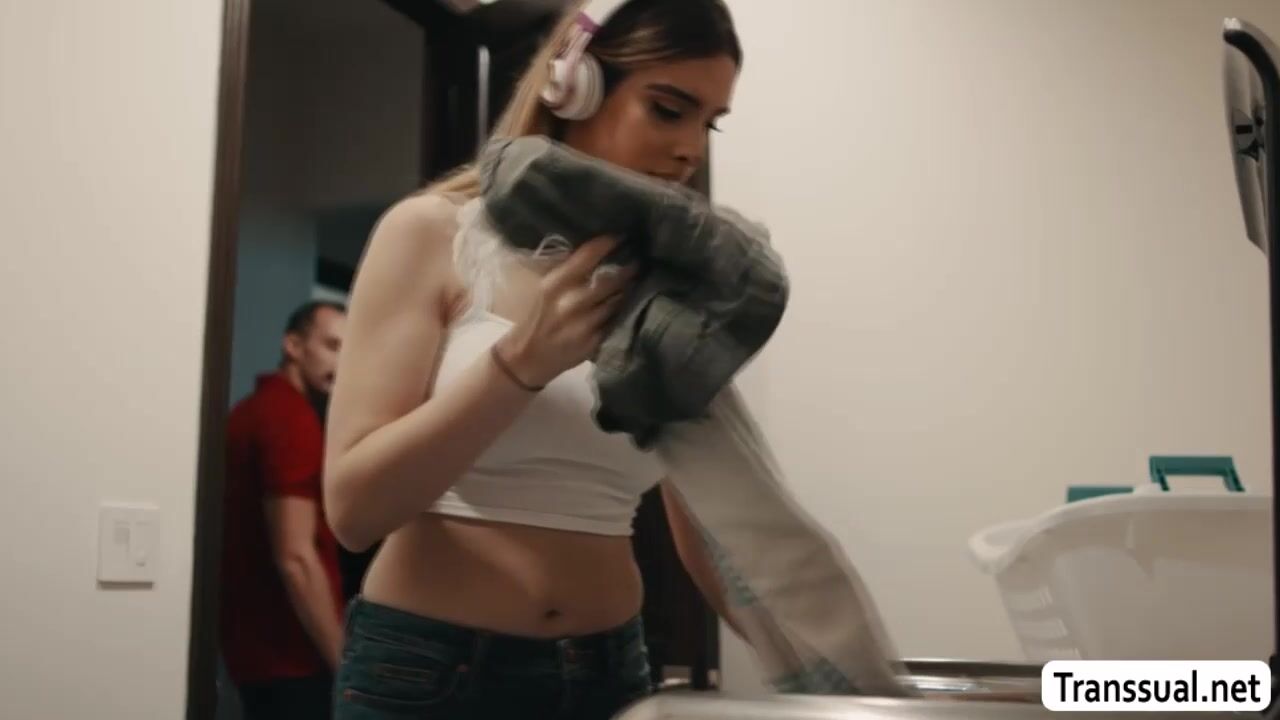 Busty and white tranny babe Ivory Mayhem tearsoff her pants while doing a laundry.The stud takes advantage fucking her tighy asshole bareback anal from behind.The shemale deepthroat blowjobs his cock ass to mouth.The stud continue to buttfucks her.