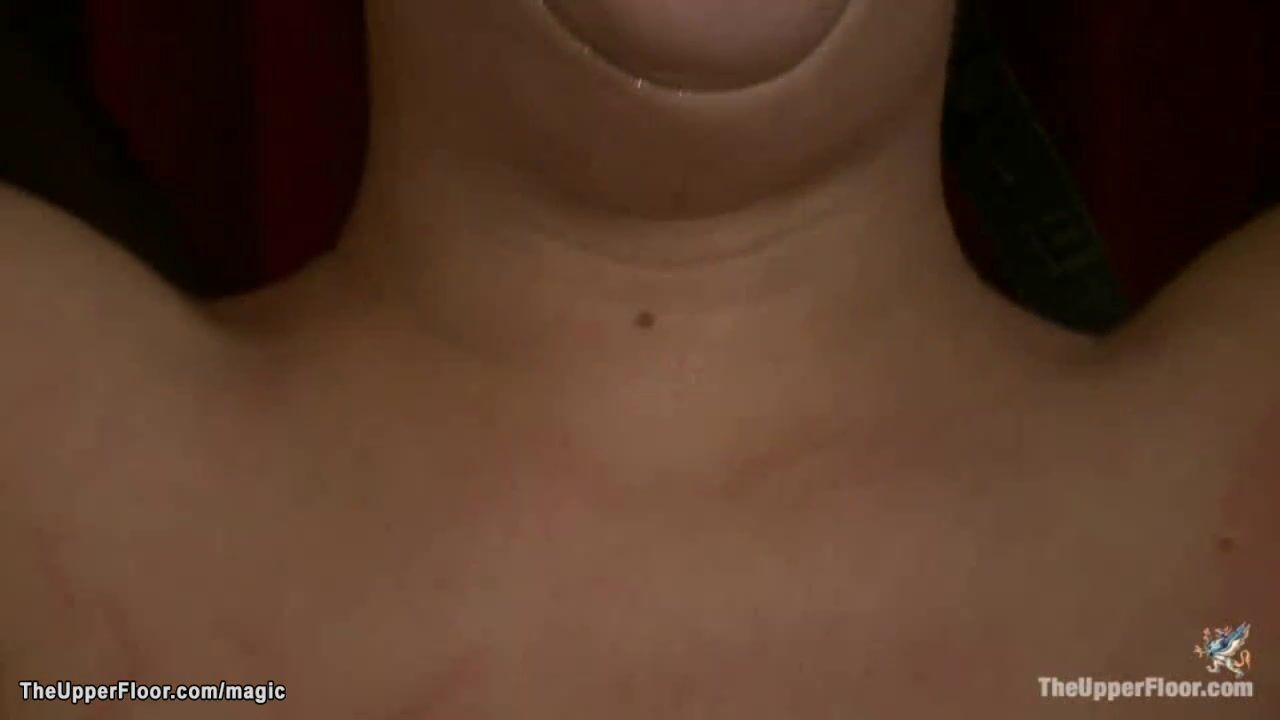 Busty blonde slave Cherry Torn is bound laid on back in bed and caned then in hogtie suspension whipped by lezdom Sophie Monroe and master The Pope in the Upper Floor