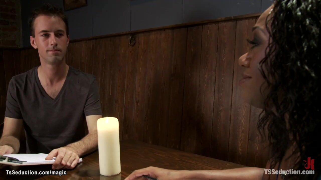 After speed date ebony shemale hottie Janet Jackme brought home white date Acheron Krosser and fucked him with bbc in mouth and ass