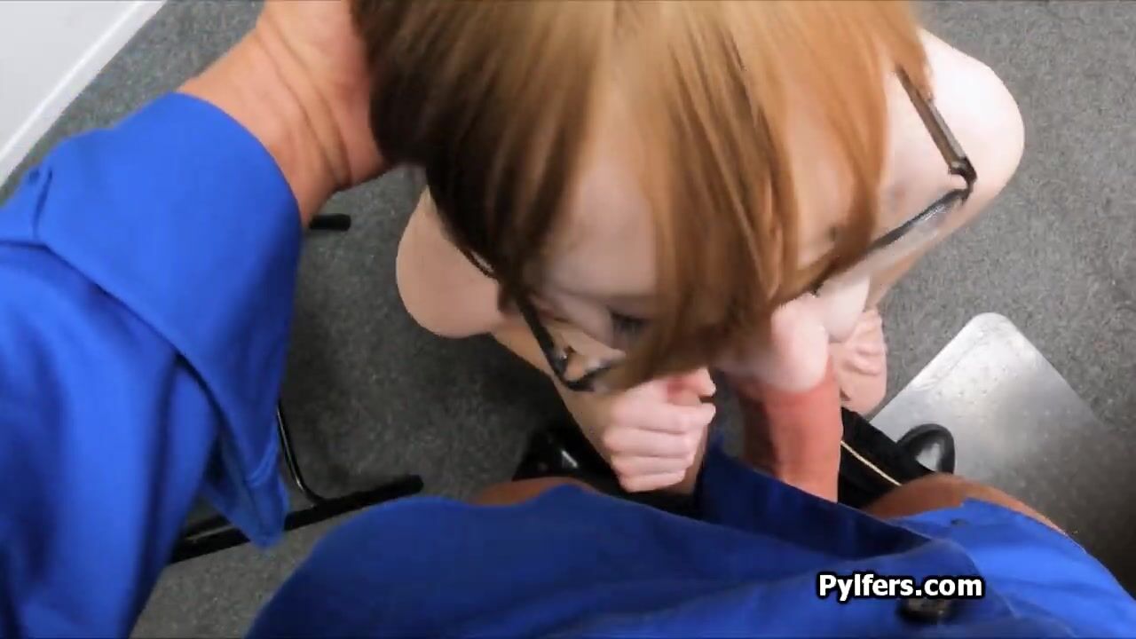 She wasnt that shy when she stole those panties.. now she is going to learn the lesson a hard way. By sucking the security guards hard dick!