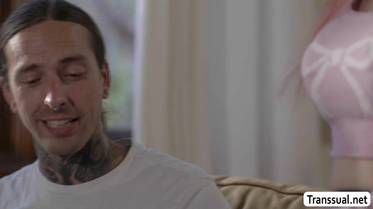 Horny dude cant resist the big ass of his shemale stepsister.He lets her pull out her shecock and he then throat it passionately.In return,she throats his stepbros big cock too and lets him bareback her tight ass so deep and hard.