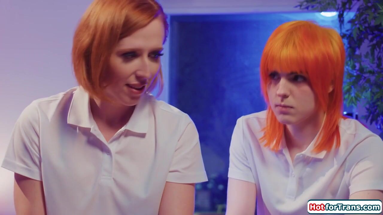 Small tits tgirls offer busty blonde a free massage.The big tits babe wants a happy end and facesits a shemale while facefucked by the other trans.She rides the ts cock while getting her boobs sucked and is licked while the tranny is anal barebacked
