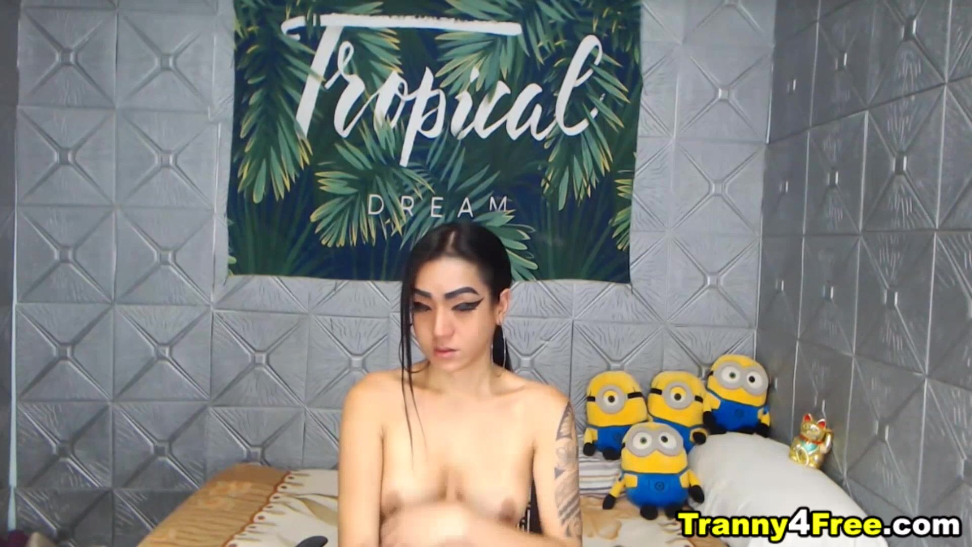 Watch this hot tranny babe stripping and booty shaking that revealed her dick see her solo on cam and how she play her favorite toy dildo in front of webcam she shows her juicy ass and licking her long dildo Shemale insert black dildo inside her juicy asshole This tranny plays with her favorite toy dildo and licking sucking it See this solo pretty tranny babe love always show on webcam while she twerked and plays with her ass she is so horny and have a very wet ass