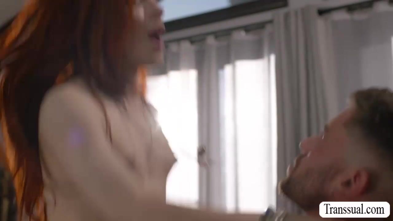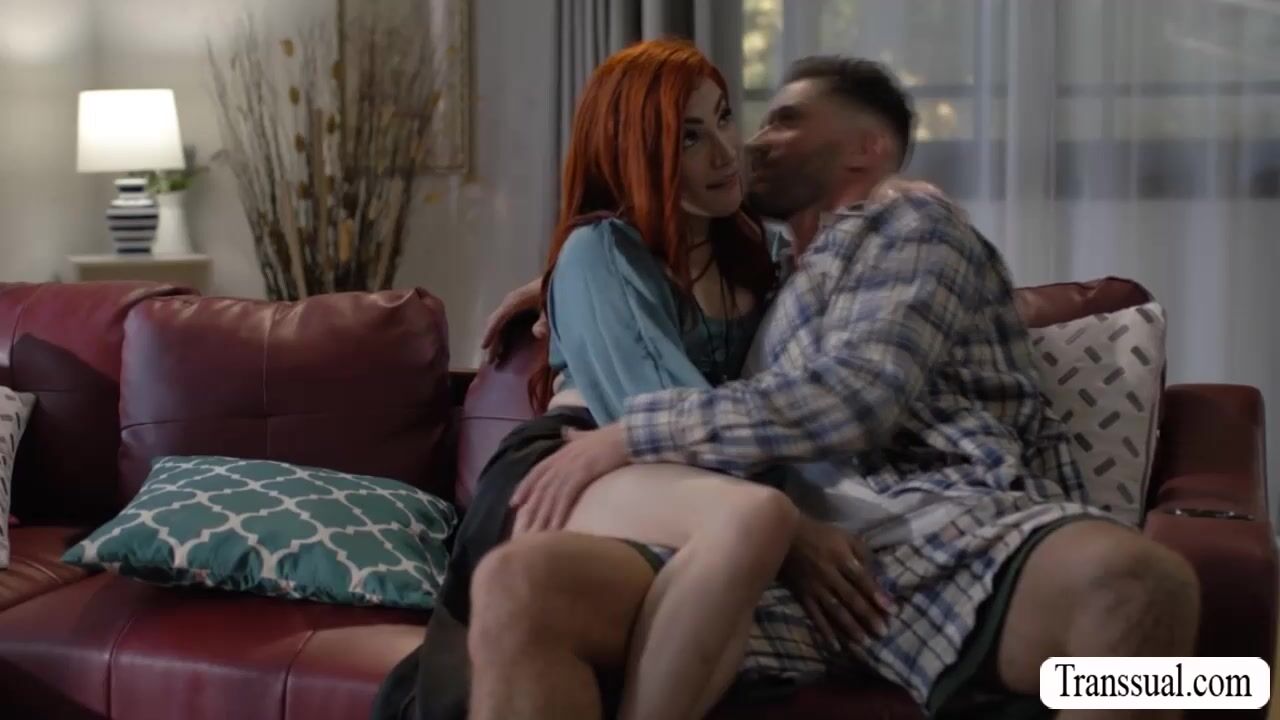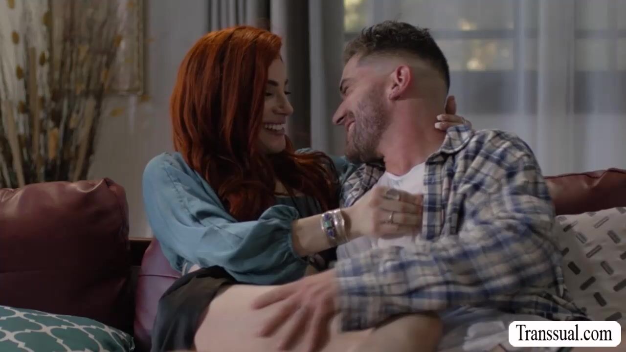 Slut shemale brings her guy mistress into her place while her husband is out.They start kissing each other on the couch and she then throats his hard big cock passionately.In return,the guy bareback fucks her tight ass so deep and hard.