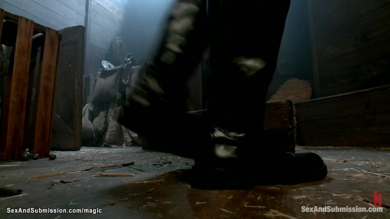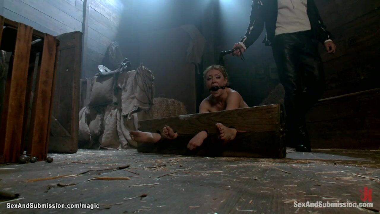 Master Steven St Croix bought on slave auction huge boobs blonde MILF slave Darling and then bound her in stable and rough fucked in various positions