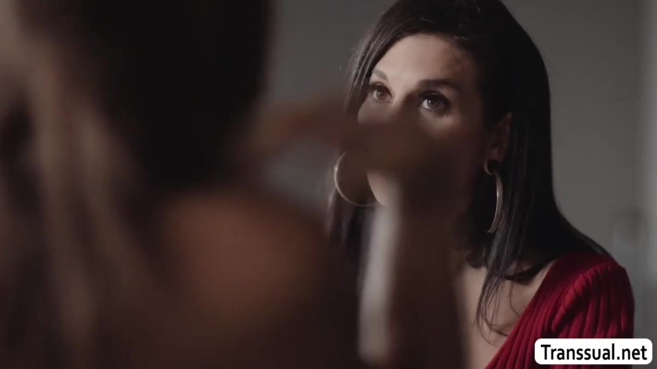 Busty tattooed stepmom shows her tits to her shemale stepdaughter.After that,they start kissing and suck their nipples passionately.Next is,she throats the tranny cock of her TS stepdaughter and in return,she gets her pussy fucked so deep and hard.