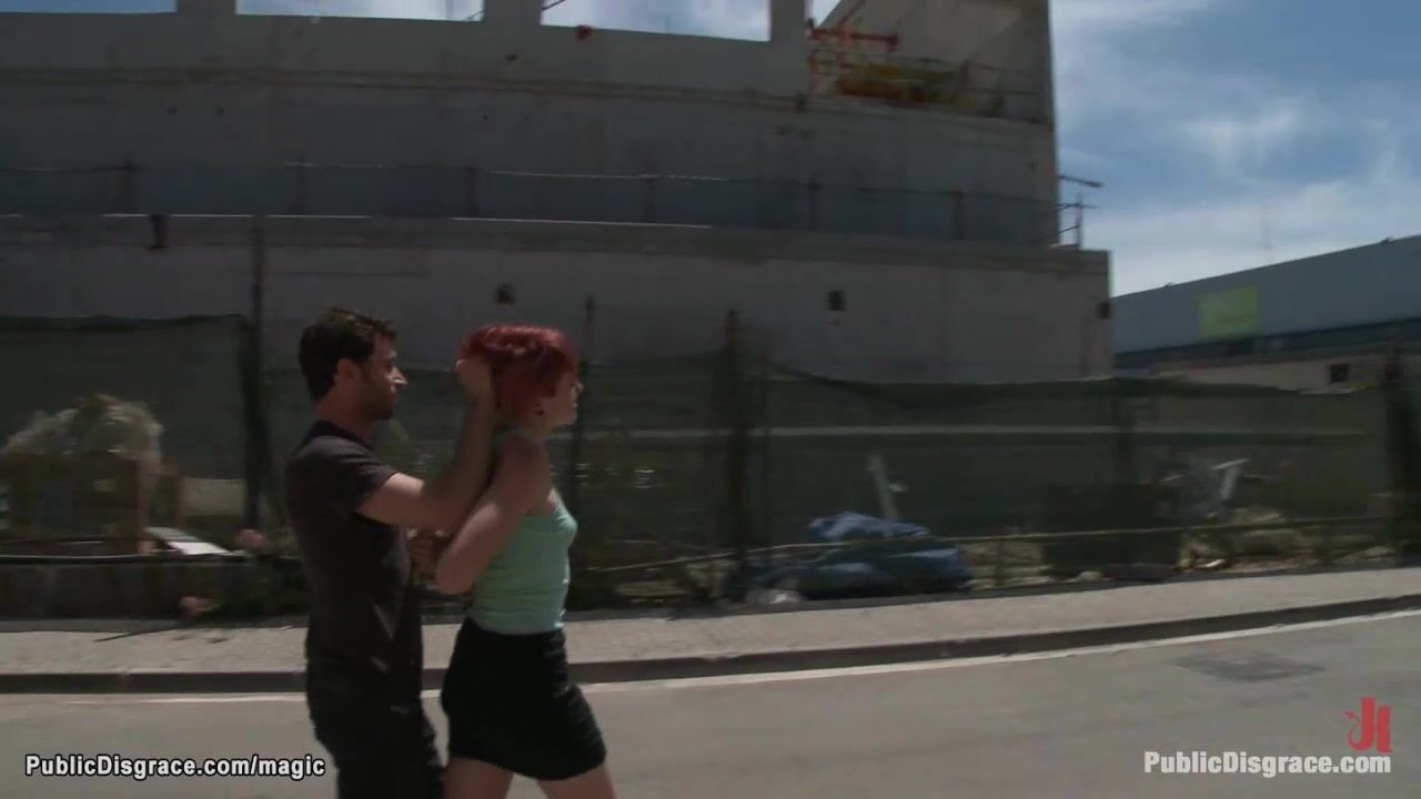 Redhead Euro babe Yakima Squaw is bound and made to walk through public streets by master James Deen then whipped and fucked by stranger