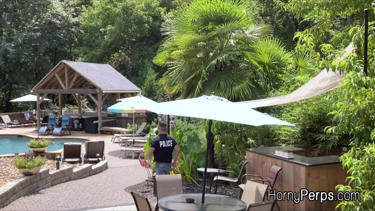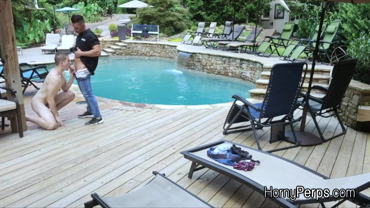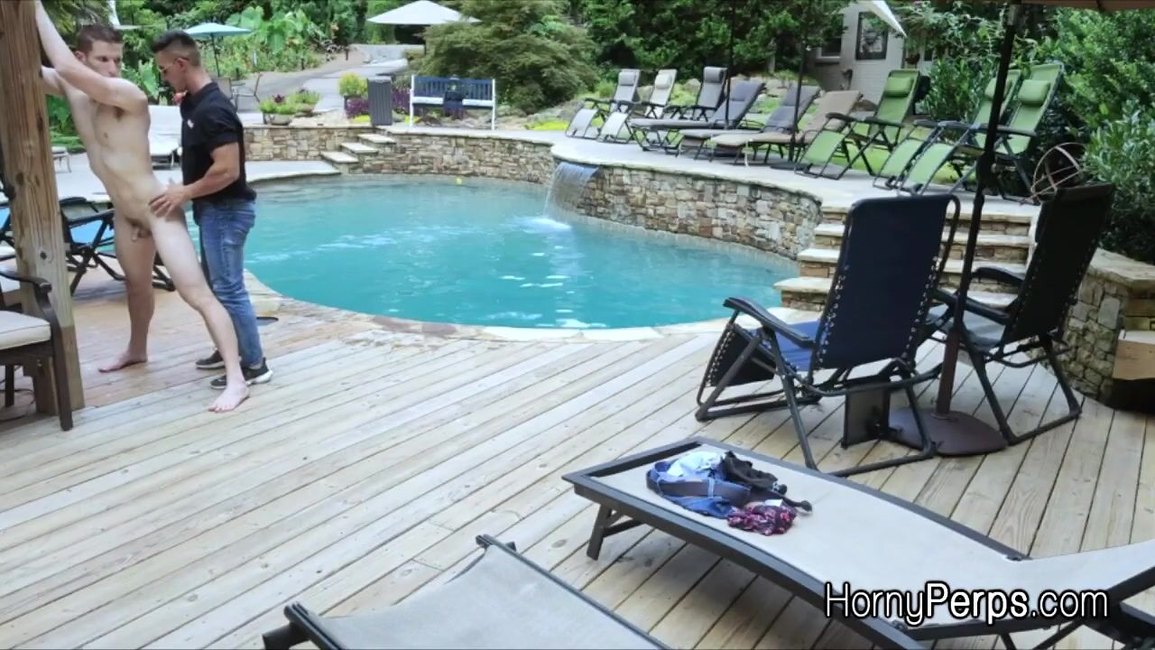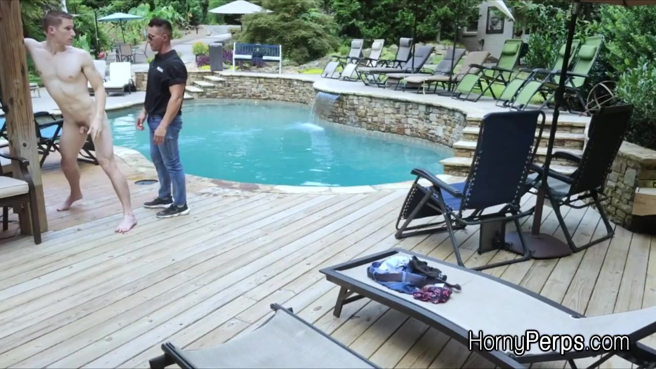 Hot stud Aiden wants to skinny dip in this rich guys pool. But he gets busted by security and ass fucked. Bareback style outdoors on the sun!