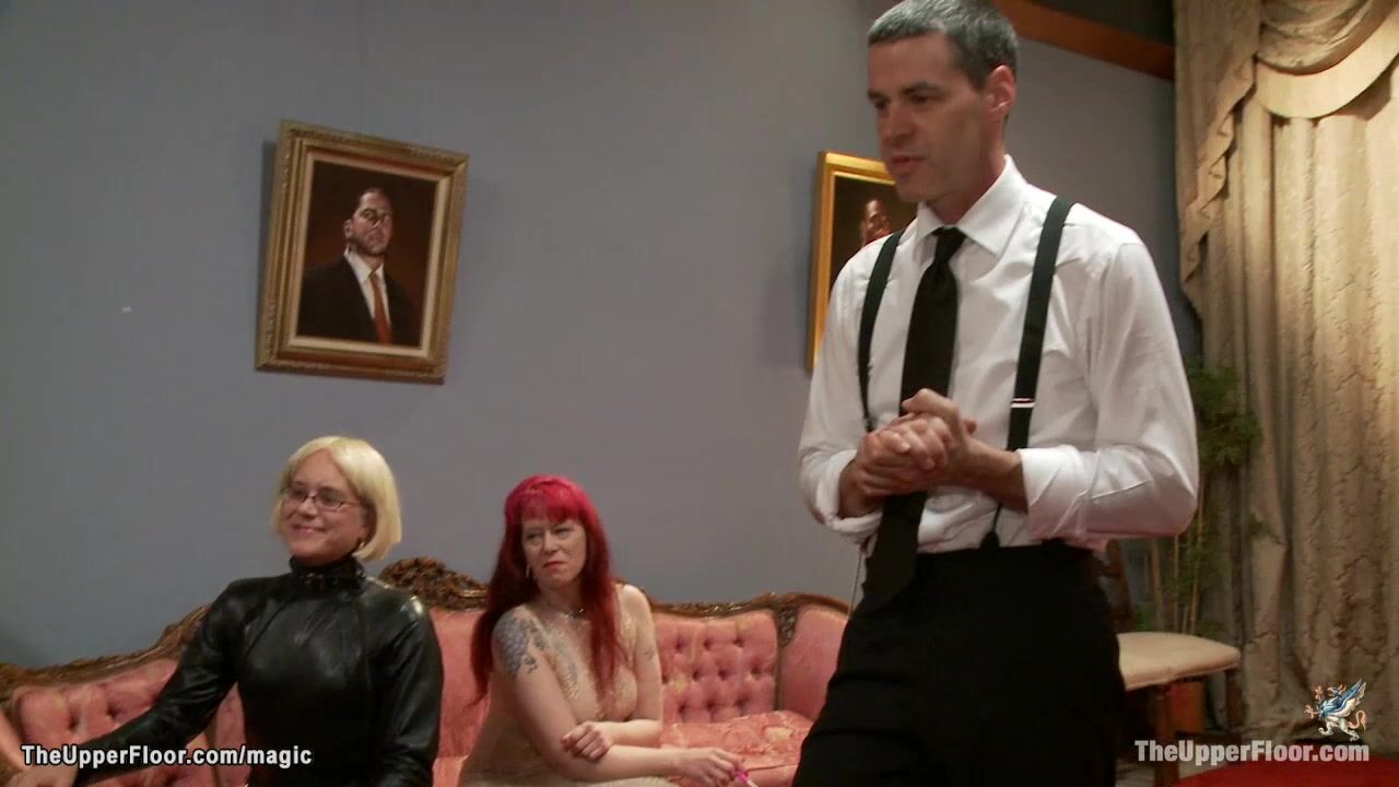 Slave handler Maestro comes to the Upper Floor games night party and controls hot sluts Juliette March and Nikki Darling and their fuckable asses