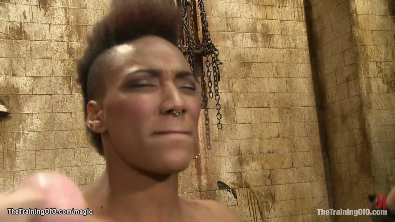 Chained ebony trainee ass whipped