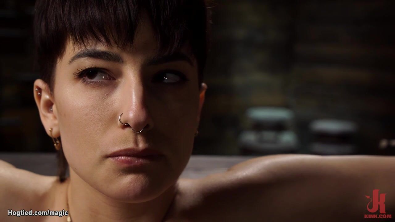 Squating slave Kristen Scott with open legs gets pussy vibrated then in back arch position hard whipped by rough master Johnpaul The Pope