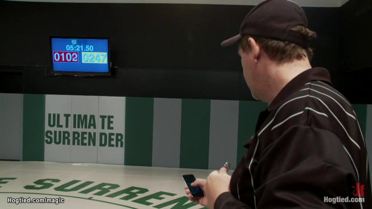 Little brunette lesbian dominatrix Gia DiMarco binds big boobs MILF wrestler Ariel X in back arch position and hard whips her then rides her face